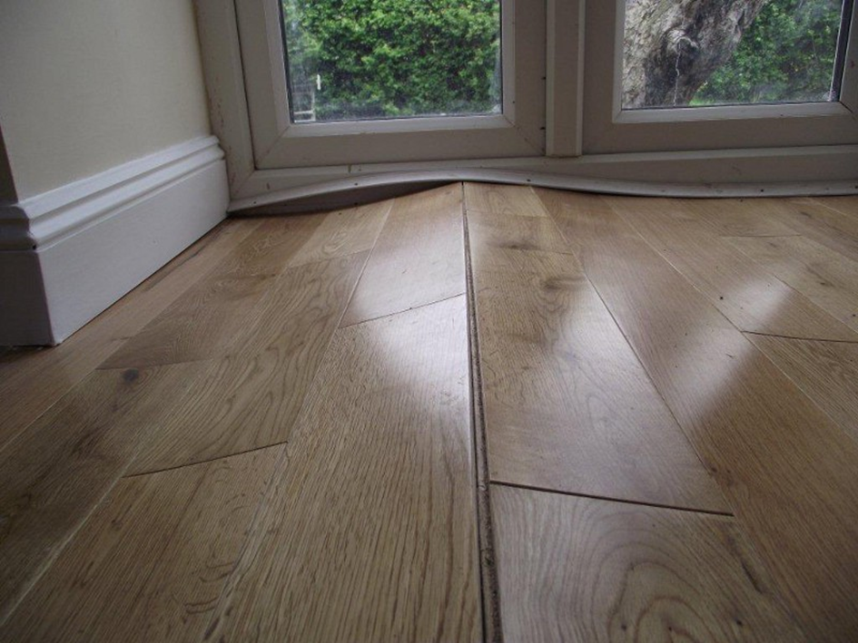 Názorná ukázka poškození dřeva – v tomto případě deformace podlahy – v případě velmi vysoké vlhkosti v místnosti.