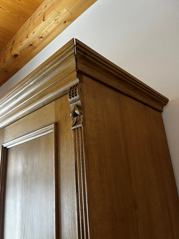 Ukázka tradičního řešení kompenzace roztahování dřeva formou rámu a vložením a zalištováním výplní dvířek
