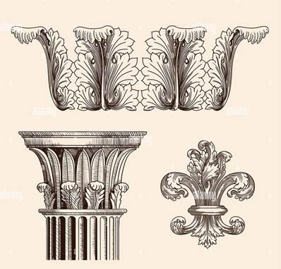 Nejstarší kořeny květinové dekorace v evropském umění lze vysledovat až do starověkého Řecka, konkrétně k akantovým listům korintských hlavic z období kolem 450-420 př. n. l.. Acant (Acanthus mollis a Acanthus spinosus) se stal jedním z nejvýznamnějších rostlinných ornamentů v architektonické tradici vycházející ze starověkého Řecka a Říma. Podle Vitruvia vznikl korintský řád díky inspiraci řeckého architekta a sochaře Kallimacha, který spatřil votivní košík na hrobě mladé dívky, kterým prorůstal akantový keř.