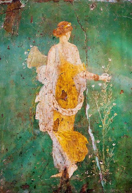 Antická freska – Bohyně Flora trhající květiny