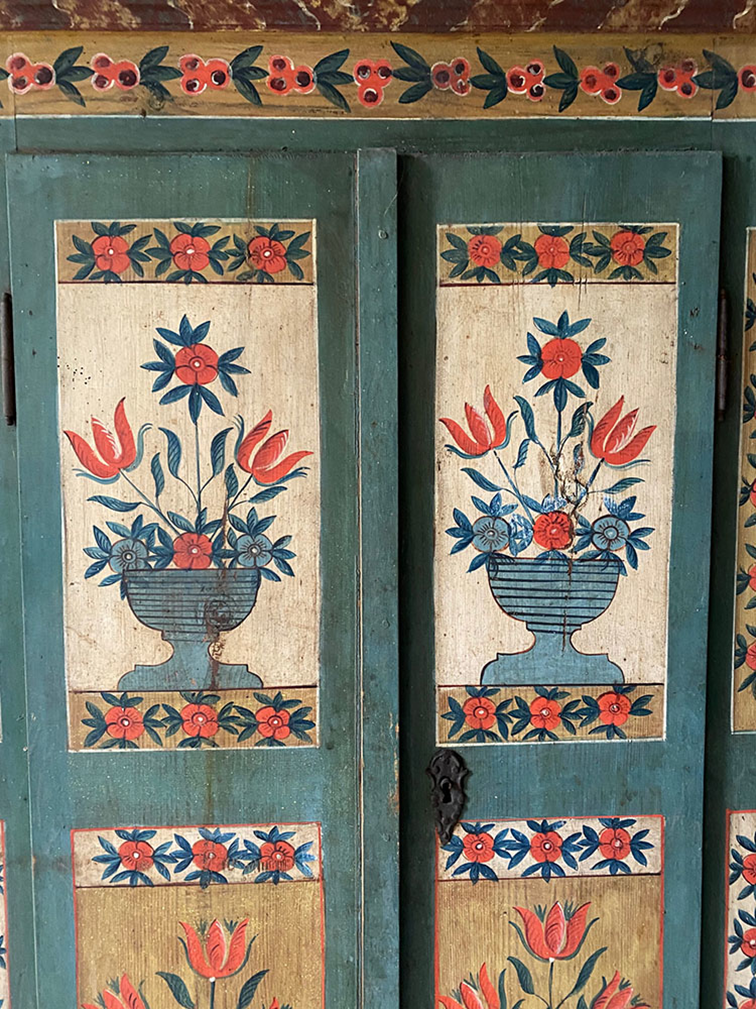 Tradiční svatební skříň s květinovým motivem johncornallantiques