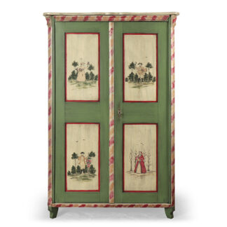 Malovaná šatní skříň z masivního dubového dřeva s alegorickým vyobrazením čtyř ročních období. Restaurovaný originální kus z 19. století s ručně malovanými figurálními motivy. Malba je provedena klasickým postupem – štětcem, temperovými barvami a patinováním. Finální povrchová úprava je dokončena přelakováním transparentním ekologickým lakem. Uvnitř je umístěna věšáková tyč na šatstvo.  Jedná se o český výrobek.